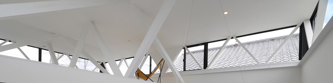 ロフト、瓦屋根の借景